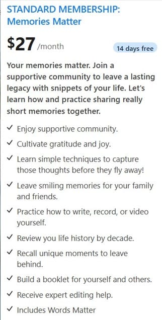 Register here to be included. Your memories matter. Join a supportive community to leave a lasting legacy with snippets of your life. Let's learn how and practice sharing really short memories together.